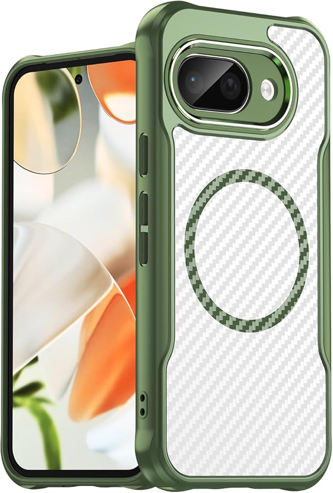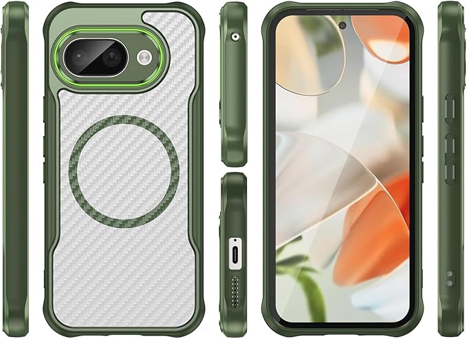 Panda Baby Google Pixel 9aケース 半透明 ピクセル9aカバー 薄型 耐衝撃バンパー マット質感 マグネット搭載 MagSafe対応 レンズ全面保護 (グリーン)