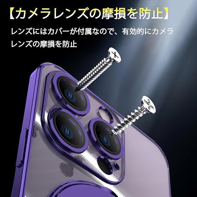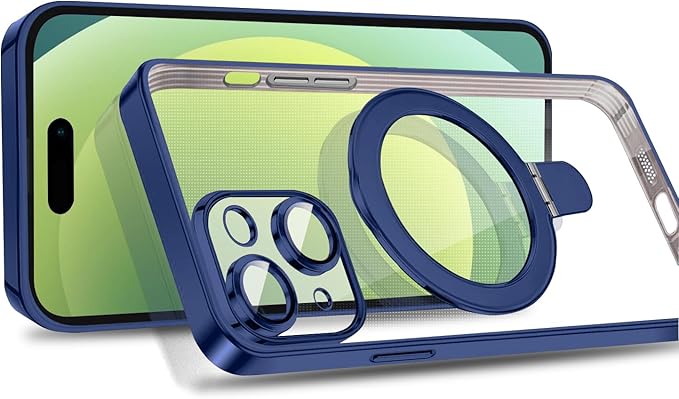 MuZiF iPhone 15 用 ケース MagSafe対応 リング付き クリア メッキ加工 カバー 車載ホルダー対応 多機能 レンズ保護 薄型軽量 耐衝撃構造 透明柔らかいTPU アイフォン15 用 磁気カバー クリアケース(iPhone 15用,ダークブルー)