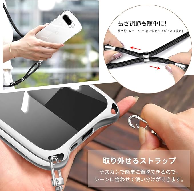 【実用性高い・人気オシャレケース】ショルダーストラップ付き、取り付けや長さ調整が非常に簡単。特にポケットのない服が多いので、外出時に肩にかけるととても便利です。ショルダーストラップは取り外し可能なので、それを使わなくても簡易的なスマホケースとして使用することができます。外出、登山、買い物、自撮り、電車内の時など日常生活からできるスマホ紛失・落下防止できるスマホネックストラップリングで両手を自由にし楽な日常