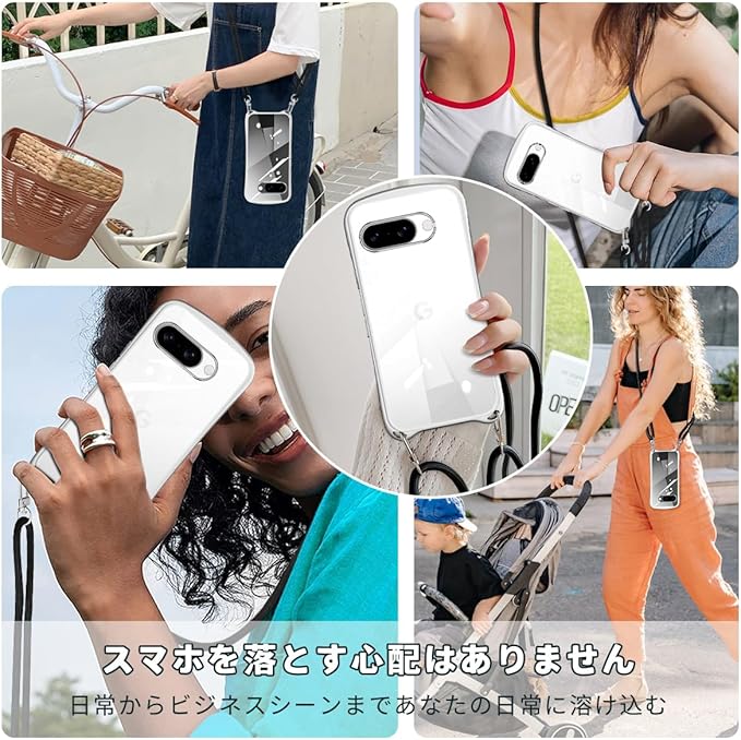 Google Pixel 9a 用 ケース クリア ショルダー ストラップ付き グーグル ピクセル9a 用 カバー 透明 肩掛け 縄掛け 斜めかけ TPU 耐衝撃 全面保護 薄型 韓国 可愛い Pixel 9a 用 スマホケース (シルバー)