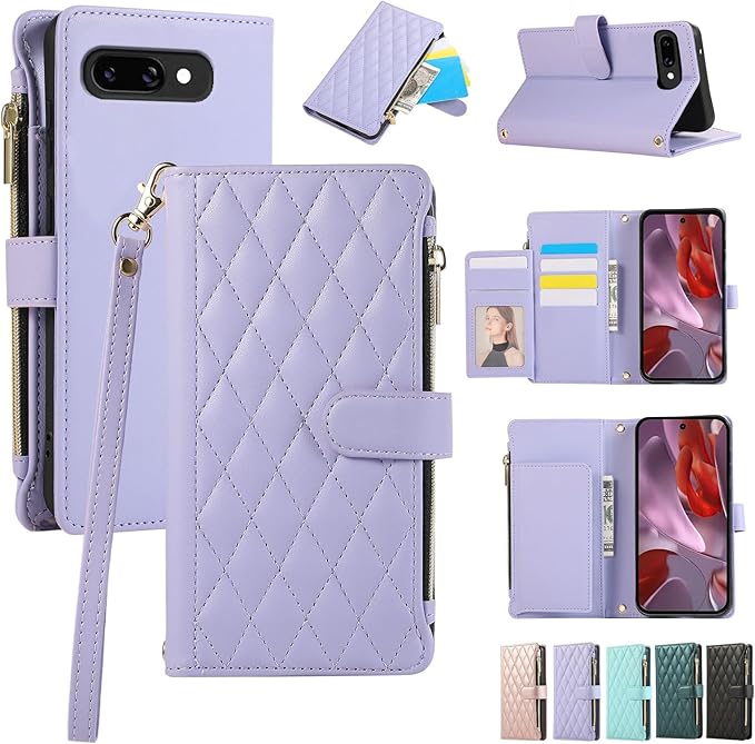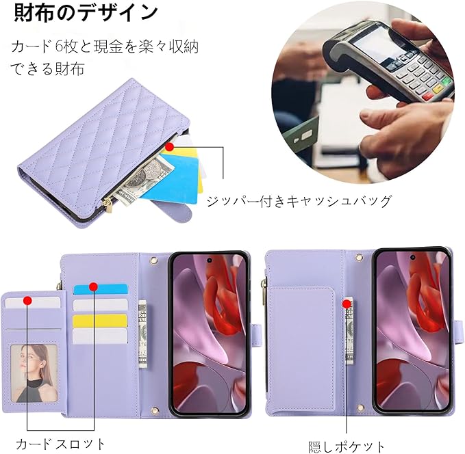 Google Pixel 9A ケース 手帳型 ピクセル9A ケース 手帳型 Googleピクセル9A ケース 財布型 スタンド機能 ショルダー 肩掛け 斜め掛け ぐーくるぴくせる9A ケース スマホケース グーグルピクセル9A 携帯カバー グーグル ピクセル 9A ケース カード収納 携帯ケース ピクセル9A カバー チャック付き 小銭入れ RFIDブロッキング おしゃれ - ライトパープル
