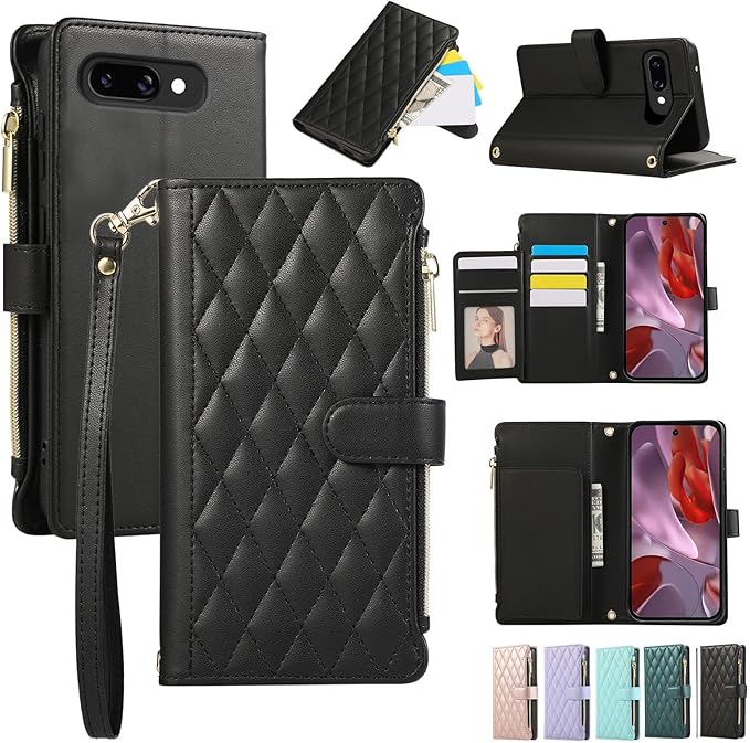 Google Pixel 9A ケース 手帳型 ピクセル9A ケース 手帳型 Googleピクセル9A ケース 財布型 スタンド機能 ショルダー 肩掛け 斜め掛け ぐーくるぴくせる9A ケース スマホケース グーグルピクセル9A 携帯カバー グーグル ピクセル 9A ケース カード収納 携帯ケース ピクセル9A カバー チャック付き 小銭入れ RFIDブロッキング 耐衝撃 おしゃれ -ブラック