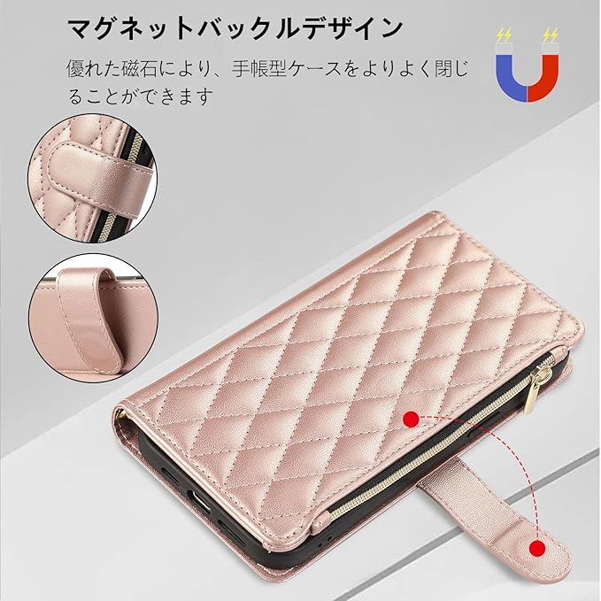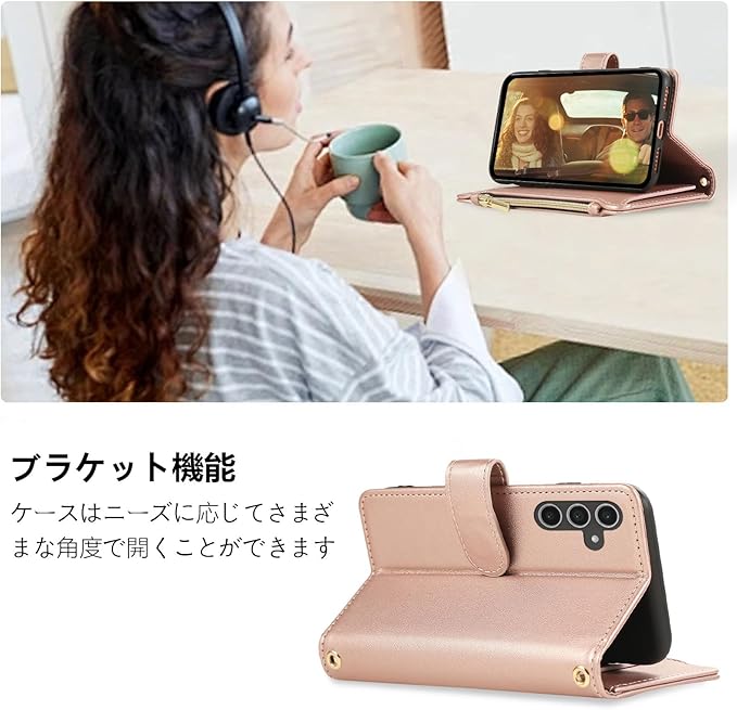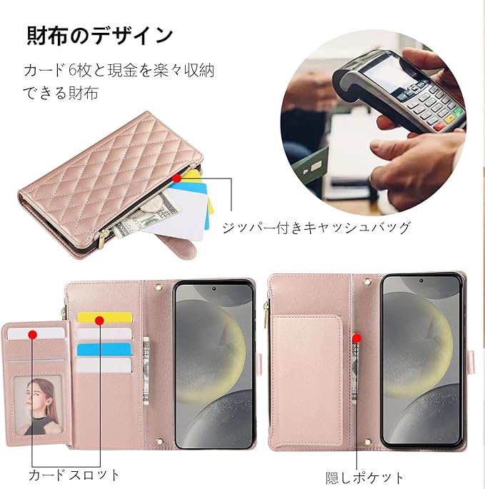 Galaxy S25 ケース 手帳型 SC-51F / SCG31 (SM-S931) ギャラクシーS25 ケース 手帳型 GalaxyS25ケース 財布型 ショルダー 肩掛け 斜め掛け ストラップ チャック付き 携帯カバー ギャラクシー S25 カバー Samsung S25 スマホケース スタンド機能 小銭入れ RFID 耐衝撃 おしゃれ カード収納 SC51F - ゴールデンピンク
