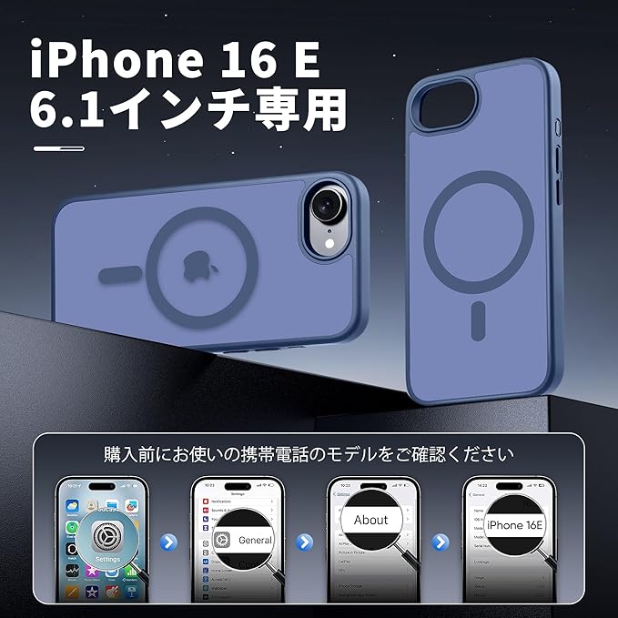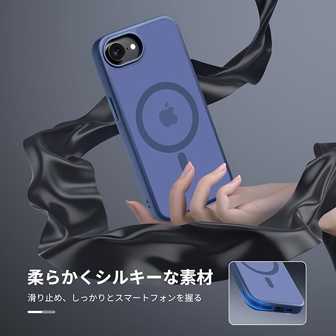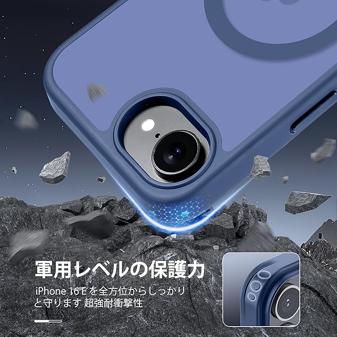 【米軍規格・MagSafe対応】Gtsoho iPhone 16e ケース 用 半透明 マグネット搭載 ワイヤレス充電 耐衝撃 耐久性 全面保護 黄ばみなし ストラップホール付き イフォン いphone16e ケース 用 カバー マグセーフ対応 ネイビー