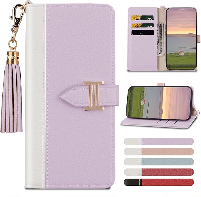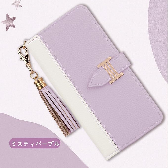 For Google Pixel 9A ケース 手帳型 Googleピクセル9A ケース Pixel9A ケース 手帳型 2色パッチワークファッション携帯ケース 財布型 マグネットクラスプ付き カード入れ収納 スタンド機能 高級PUレザー 全面保護 グーグルピクセル9A ケース(同色のペンダント付き) (ミスティパープル)