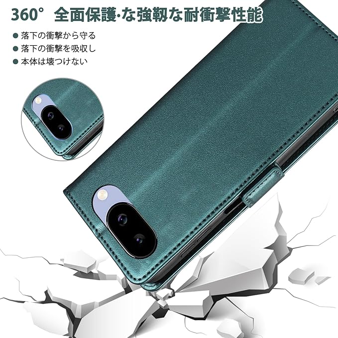 CeiLarv For Google Pixel 9a ケース 手帳型 マグネット開閉式 耐衝撃 スマホケース 財布型 カードポケット付き 6.3インチ 携帯カバー 用グーグルピクセル9a 手帳ケース ビジネス風 スタンド機能 高級PUレザー 全面保護 用 Google ピクセル 9a 保護ケース グリーン