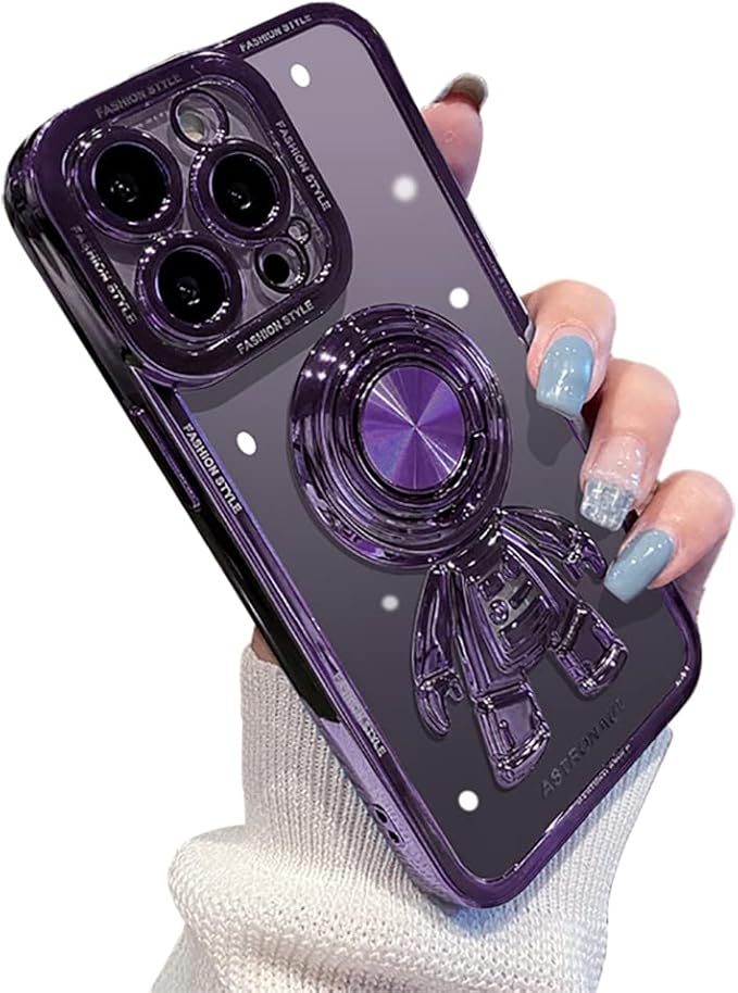 iPhone 15 Pro Max ケース リング付き 可愛い クリア キャラクター iPhone 15 Pro Max ケース 韓国 シンプル リングケース おしゃれ アイフォン15 Pro Maxケース 人気 透明 クリアケース スタンド機能 個性的【Sakanana】 ストラップホール付き 軽量 薄型 耐衝撃 ソフトケース 全面保護ケース(iPhone 15 Pro Max,パープル)