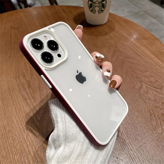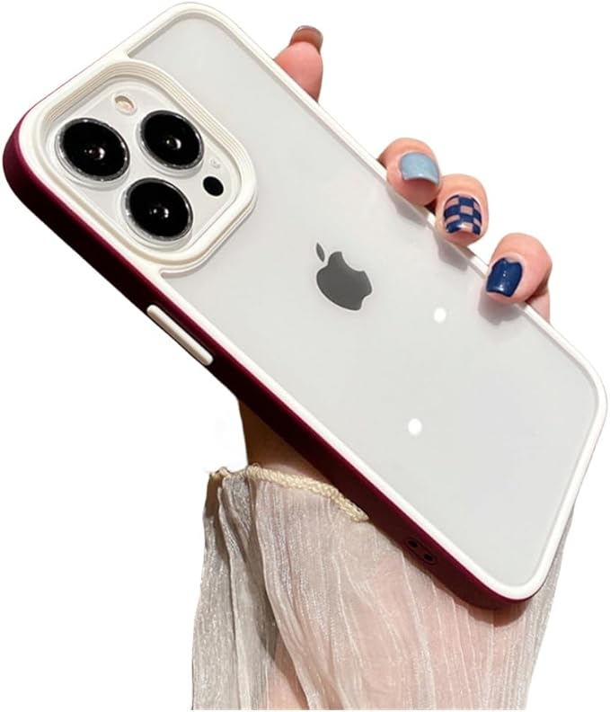 iPhone15 Plus ケース ストラップホール付き クリア 透明 カバー 2色 配色 薄型 可愛い レディース iPhone15プラス カバー 背面ケース ハードケース (15Plus, 梅色)