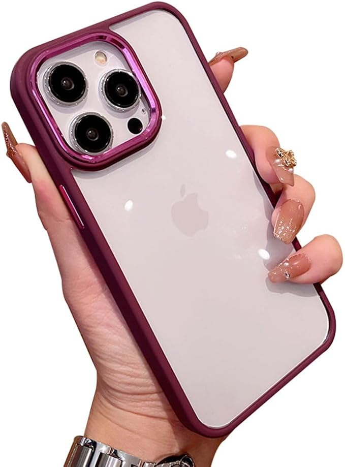 iPhone 15 ケース ストラップホール付き クリア 透明 カバー 2色 配色 薄型 可愛い レディース アイフォン 15 カバー 背面ケース ハードケース (iPhone15, 梅色)