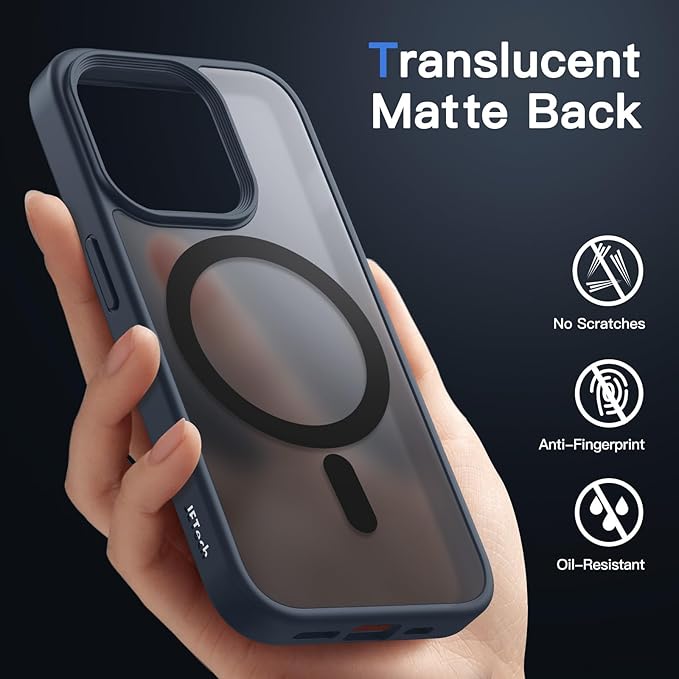 JETech iPhone 15 Pro 6.1インチ用 マグネット ケース MagSafeに対応 半透明のマット背面 薄型 耐衝撃 カバー (ブルー)