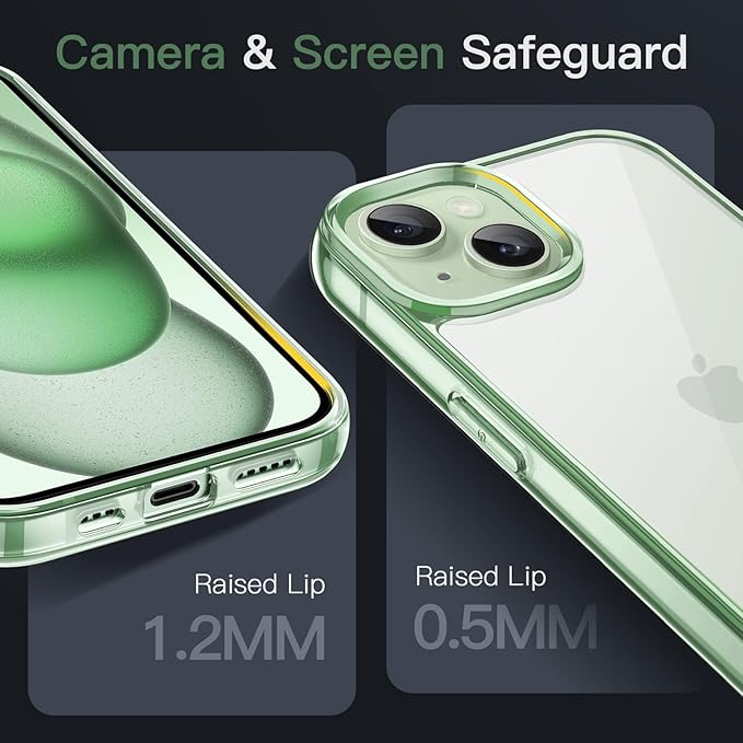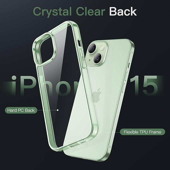 JETech iPhone 15 6.1インチ用 保護ケース 黄ばみなし 衝撃吸収 バンパーカバー 傷つけ防止 クリアバック (グリーン)