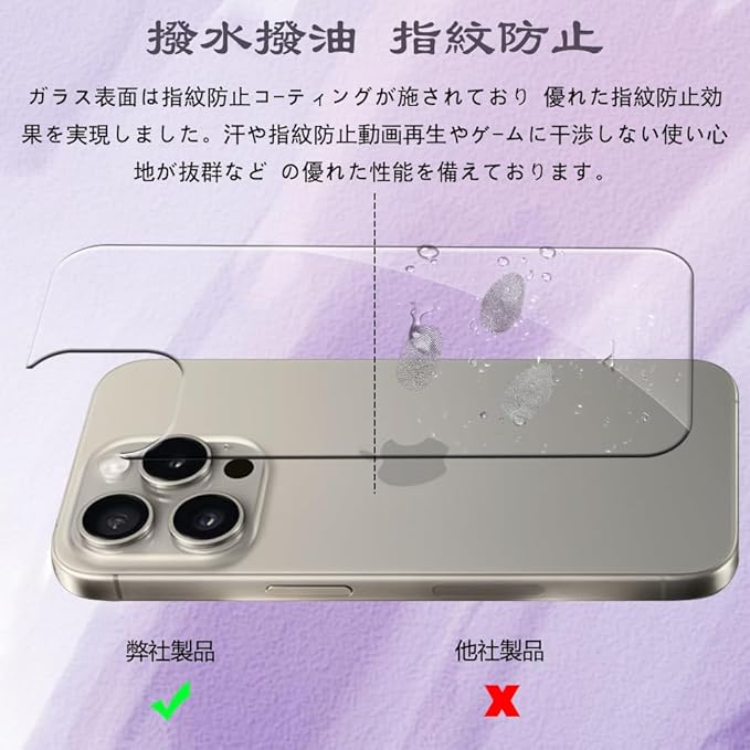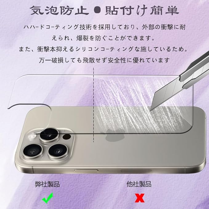【対応機種】対応機種:iPhone15 Pro 専用 背面ガラスフィルム です。セット内容:2枚セット 用 アイフォン 15 Pro 6.1'' 背面強化ガラスフィルム。必ずご購入前に携帯電話の機種をご確認ください。