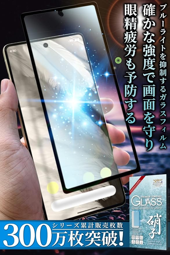 シズカウィル Google Pixel8 Pro 用 ガラスフィルム 強化ガラス 全面保護 保護フィルム フィルム 目に優しい ブルーライトカット 液晶保護フィルム 黒縁 1枚入り