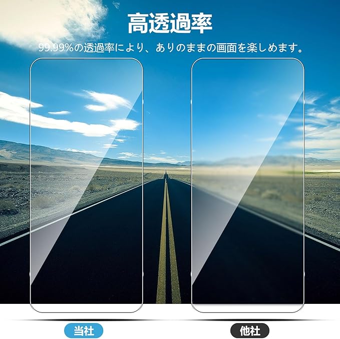 【高透過率&高タッチ感】99%以上の高透過率で、元の液晶画質を損なうことなく、色鮮やかに映し、美しい画面を鮮明に保ち続けます。強化ガラスは高感度処理されて、滑らかな手触りとタッチ感を実現します。画面上の操作も違和感なくスムーズに行えます。