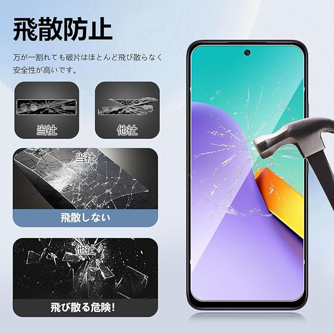 【硬度9H&飛散防止】高品質な旭硝子の素材で、業界最高レベルの硬度を誇ります。ハードコーティング加工により外部からの衝撃を吸収し、画面へのダメージを最低限まで抑えました。万が一割れても破片はほとんど飛び散らなく、安全性が高いです。