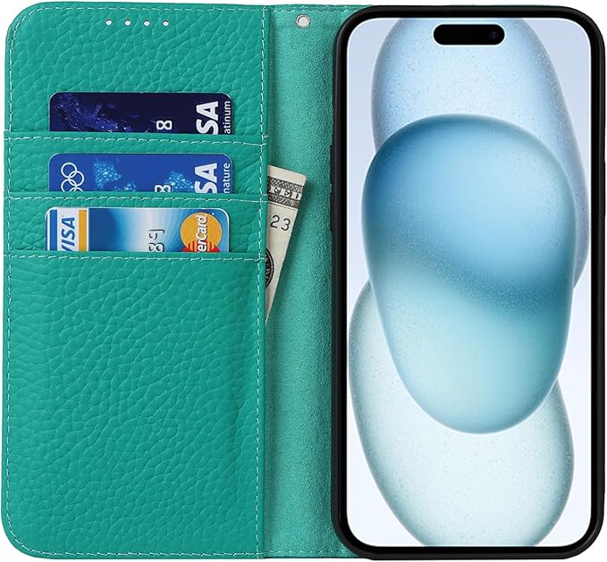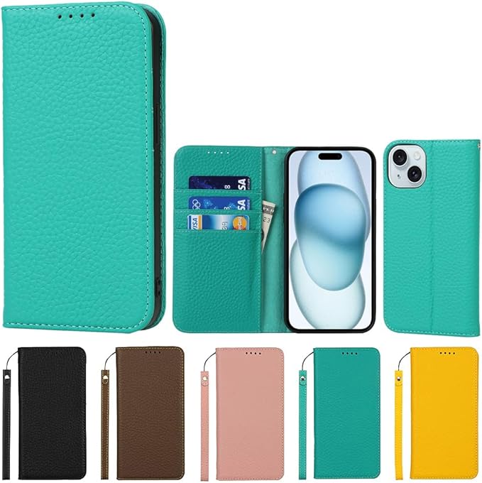 Eastwave アイフォン iPhone 15 ケース 牛革 本革 手帳型 iPhone15 財布型カバー iPhone 15 本革 手帳型 携帯スマホカバー 人気 おしゃれ 内蔵マグネット 耐汚れ 耐衝撃 カード収納 軽量 人気 -グリーン