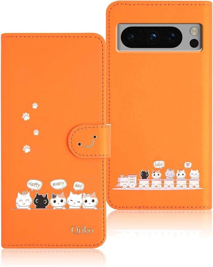 Qribo Google Pixel 8 Pro ケース 手帳型 ピクセル8 Pro ケース Pixel8 Pro ケース シンプルなのに可愛いデザイン エンボス加工猫柄 うれしい気持ち 6.7インチ対応 グーグルピクセル8Pro ケース ピクセル8プロ カバー Pixel8プロ スマホケース 薄型 Pixel8Pro 手帳型ケース 防水 の耐久性 滑り防止 美しい 贈り物 友達 - オレンジ