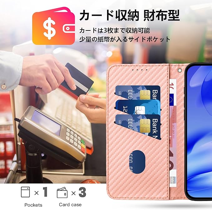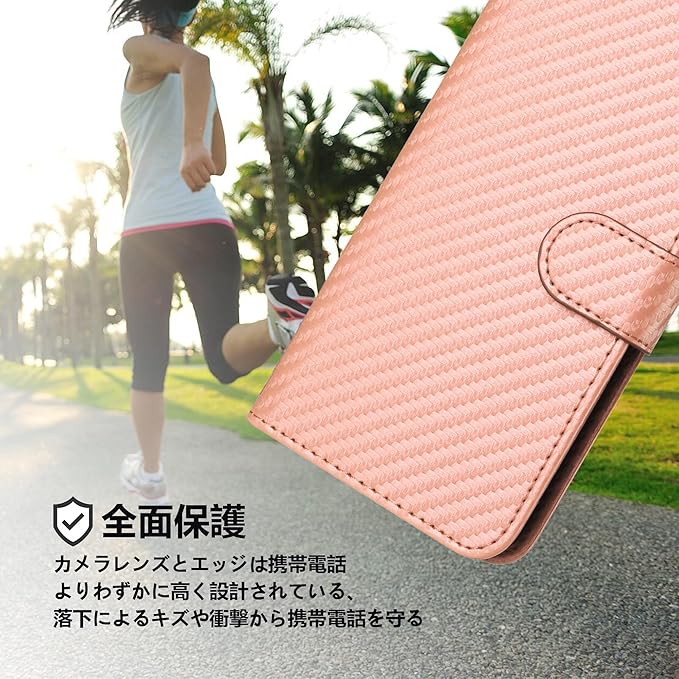 【上質な素材】このケースの外装は高品質のPU素材とカーボンファイバーの質感で作られており、手に馴染み、傷防止、指紋防止、優れた熱と衝撃吸収性を持っています。内側はソフトなTPU素材で携帯電話を保護し、着脱も簡単です。また、ケースは携帯電話を360°保護し、カメラレン