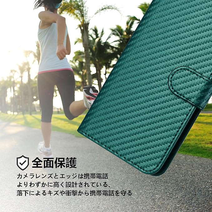 【上質な素材】このケースの外装は高品質のPU素材とカーボンファイバーの質感で作られており、手に馴染み、傷防止、指紋防止、優れた熱と衝撃吸収性を持っています。内側はソフトなTPU素材で携帯電話を保護し、着脱も簡単です。また、ケースは携帯電話を360°保護し、カメラレン