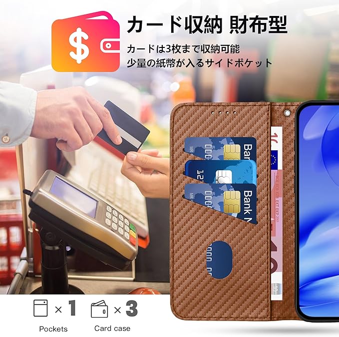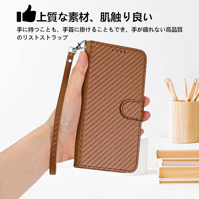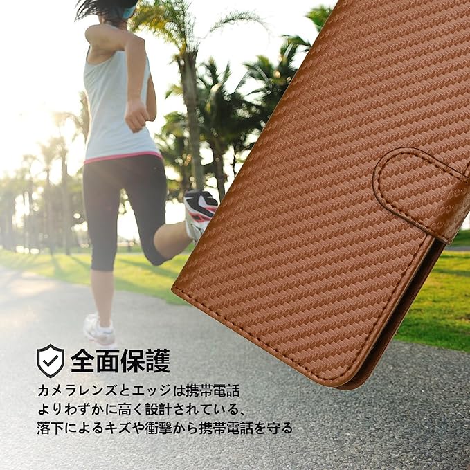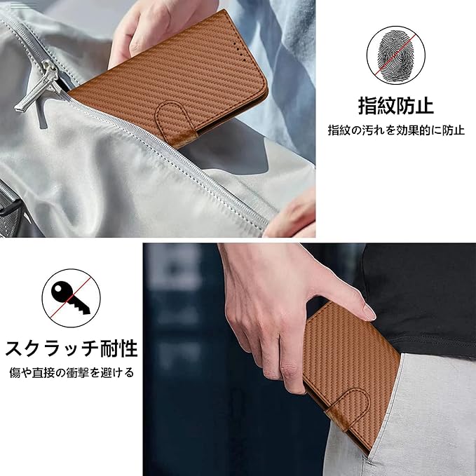 【上質な素材】このケースの外装は高品質のPU素材とカーボンファイバーの質感で作られており、手に馴染み、傷防止、指紋防止、優れた熱と衝撃吸収性を持っています。内側はソフトなTPU素材で携帯電話を保護し、着脱も簡単です。また、ケースは携帯電話を360°保護し、カメラレン