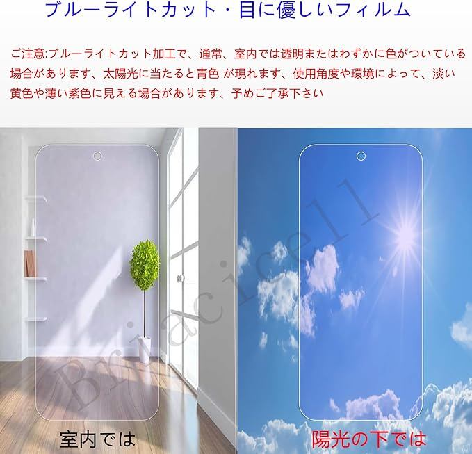 【 ブルーライトカット・目に優しいフィルム 】先進ブルーライトカット反射技術によりブルーライトを大幅にカットでき、ブルーライトから目を守り、目に掛かる負担を軽減し、色素沈着を防止、効果的に近視を予防できます、ディスプレイを長時間眺める方に効果を発揮します (ご注意:ブルーライトカット加工で、通常の使用時には透明ですが、太陽光に当たると青色が現れます、使用角度や環境によって