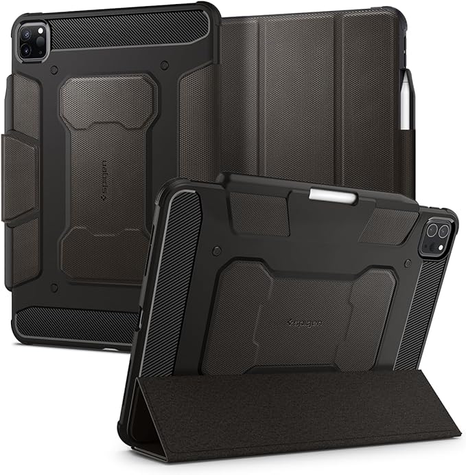 Spigen iPad Pro 11インチ ケース (2022 2021 2020 2018)用 第4/3/2/1/世代対応 カバー 三つ折り スタンド Apple Pencil対応 耐衝撃 米軍MIL規格 落下 衝撃 吸収 ラギッド・アーマープロ ACS01025 (ガンメタル)