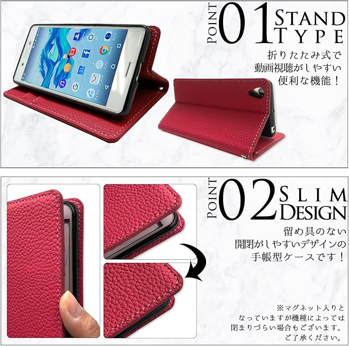 Xperia 10 II SO-41A SOV43 A001SO 用 ケース カバー 手帳型 SO-41Aケース SO-41Aカバー so41a エクスペリア10 ⅱ xperia10Ⅱ スタンド機能 PUレザー スマホケース スマホカバー 手帳型ケース 手帳型カバー red ちょっと上品な型押し レッド