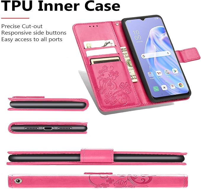 OPPO Reno3A ケース シン フィット オッポ リノ レノ 3 A おしゃれ 純色 四つ葉のクローバーの印 PUレザー 上絵 手帳型 カード入れ NTT ドコモ OPPO Reno3 A 財布カバー スタンド機能 耐衝撃 防塵 耐久性 装着やすい 吸着の機能 キラキラ 胡蝶 ラインストーン デコ メチャ可愛い oppo reno 3a スマホカバー (ローズ)