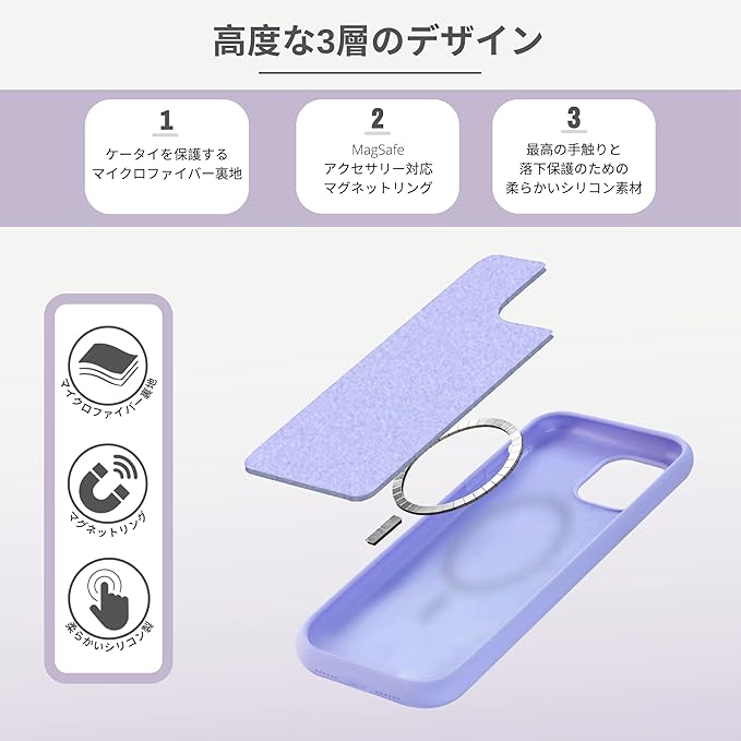 VECI iPhone 11 マグネットケース、マグセーフアクセサリー対応、シリコン素材、内蔵マグネット [MagSafe] (iPhone 11, Light Purple)