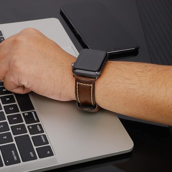 HUAFIY Apple Watch 用バンド42mm 44mm 45mm46mm49mm 本革 交換ベルト Apple Watchシリーズ 10/9/8/7/6/5/4/3/2/1/SE,ultra対応 (42mm44mm45mm46mm49mm対応, ヴィンテージコーヒー/ブラックボタン)