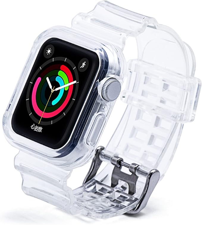 Apple watch バンド アップルウォッチバンド スポーツバンド 交換用ベルト 透明 クリア iWatch Series 38mm 40mm 42mm 44mm 6/5/4/3/2/1/SEに対応 全面保護ケース (38mm/40mm)