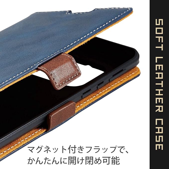 エレコム AQUOS R6 AQUOS R6 レザーケース 手帳型 ステッチ 磁石付き ネイビー PM-S211PLFYNV