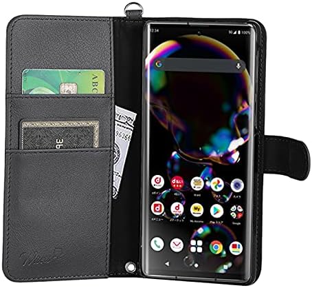 wisers AQUOS R6 SH-51B A101SH SH-M22 ケース カバー 手帳型 [ ストラップ 2種付 ] Sharp シャープ docomo ドコモ Softbank ソフトバンク スマートフォン スマホケース ハンドストラップ ネックストラップ カードホルダー [2021 年 新型] ブラック
