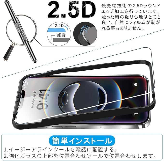 【簡単貼り付け・気泡防止】:フィルムの自己吸着層により、位置を合わせて上から軽く置くだけで、簡単に貼り付けることができ、気泡が入り込まなりません。画面部分もエッジ部分もしっかりと貼ることができます。