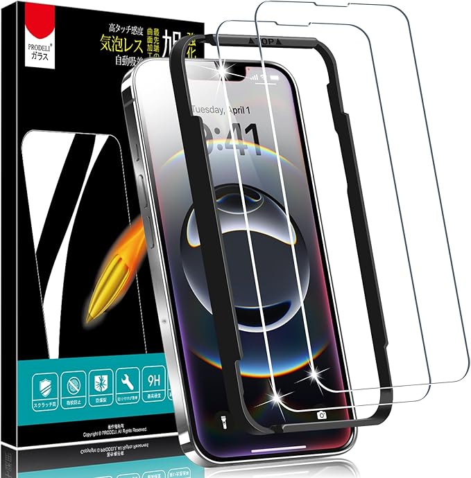 PRODELI iPhone 16e 專用 ガラスフィルム/iPhone 13 Pro/iPhone 13 / iPhone 14 專用 ガラスフィルム 日本旭硝子素材製 6.1インチ 対応 AGC旭硝子素材製 ガイド枠付き 9H硬度 気泡防止 飛散防止 貼り付け簡単 撥油性 アイフォン16E/14/13/13Pro/SE4 (2025) 用 液晶 保護フィルム【2枚入り】