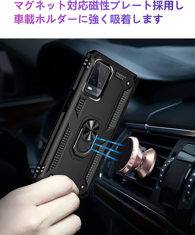 OPPO A54 5G ケース リング DINGXIN au OPG02 米軍MIL規格取得 耐衝撃 薄型 軽量 車載ホルダー対応 オッポa54 リング付き 360度回転 スタンド機能 TPU+PC 指紋防止 落下防止 擦り傷防止 取り出し易い (OPPO A54 5G, ブラック)