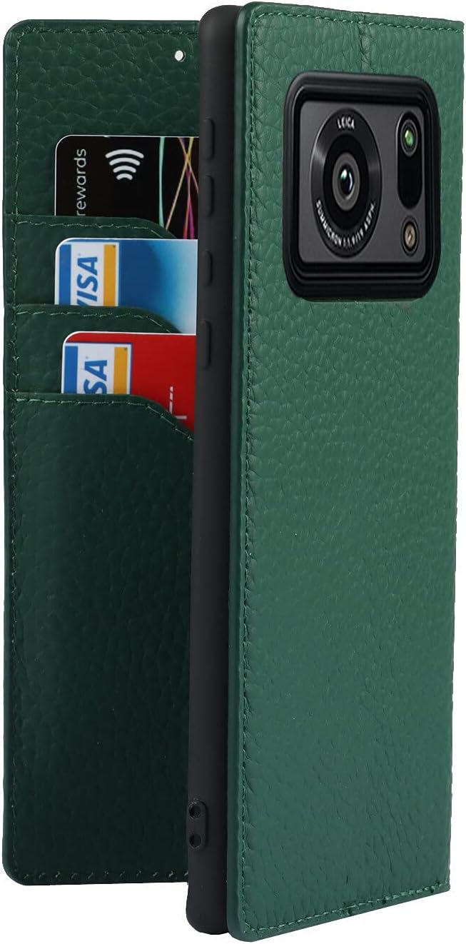 Eastwave AQUOS R6 docomo SH-51B / softbank ケース 本革 本革 AquosR6 手帳型 ケース 財布型 カバー 本革 柔らかい 本皮 スプラットホール付き スプラット同梱 内蔵マグネットカード収納 横置きスタンド機能 - ダークグリーン