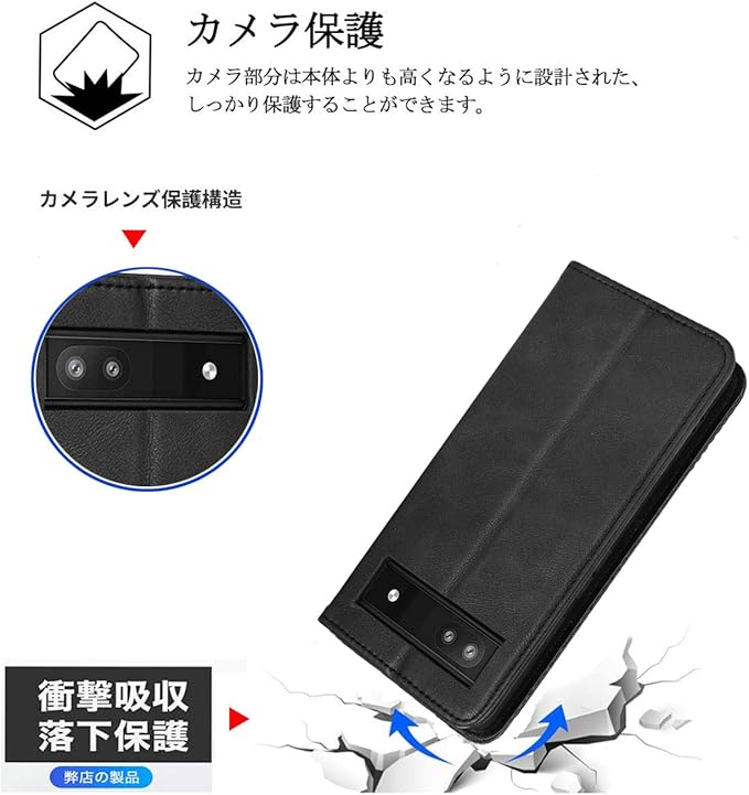 Google Pixel 6A ケース【MARR】 スマホケース 手帳型 シンプル カバー 手帳型ケース Pixel 6A 高級PU レザー カバー カードポケット 手作り スタンド機能付き 全面保護 マグネット 吸着 (ブラック)
