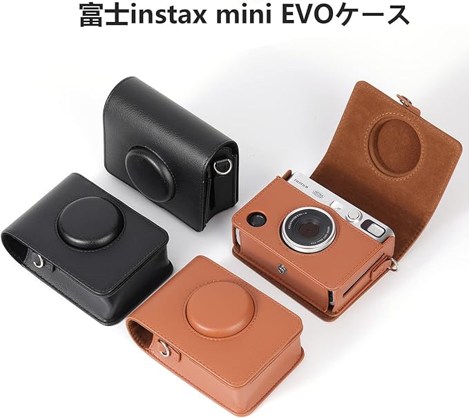 チェキフィルム instax mini Evoケース FUJIFILM チェキ 保護カバー 富士フイルム チェキ 全面保護 傷つけ防止 ショルダーストラップ付き PUレザー 携帯便利 取り出し簡単 磁気スナップ付き