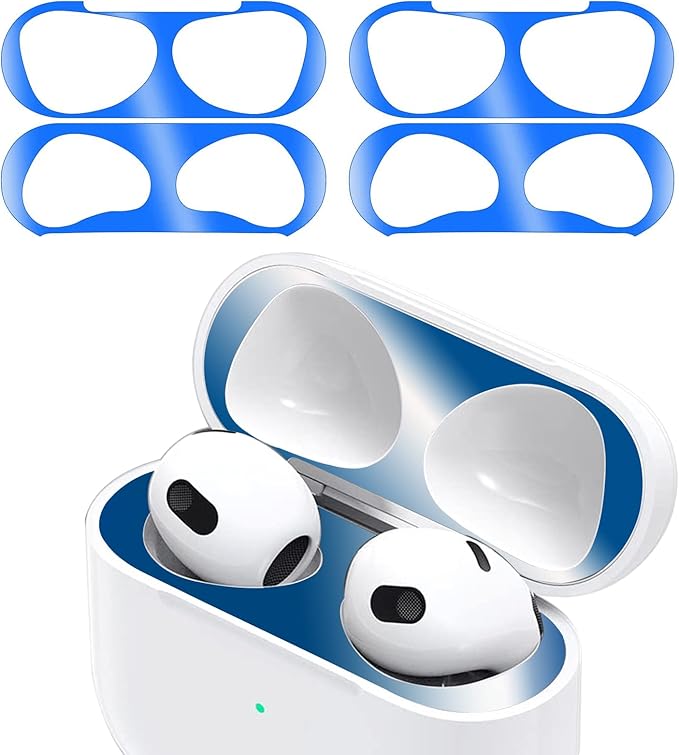 ANYOI AirPods 3 用 ダストガード 【2セット0.02mm 極薄】エアーポッズ 3用 ガードカバー 第三世代 用 ガードカバー故障防止 吸着 ほこり ゴミ 金属製 侵入防止 防塵 粉塵防止 おしゃれ お洒落 豪華 人気 ブルー 4枚