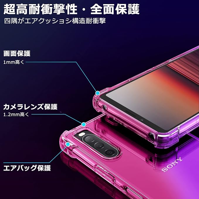 AQUOS R6 ケース 耐衝撃 クリア TPU SH-51Bカバー SH-M22 カバー 薄型 軽量 滑り止め 黄変防止 柔軟 Qi充電 衝撃吸収 指紋防止 米軍MIL規格取得 ワイヤレス充電に対応 カメラ保護 カバー ピンク+紫 N415-R6-03