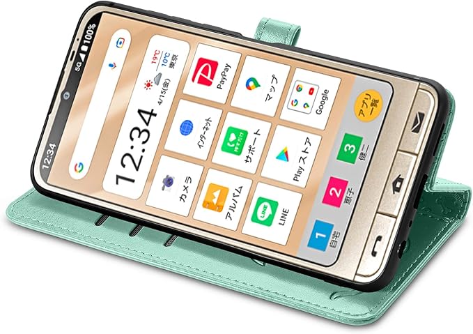 シンプルスマホ6 ケース 手帳型 対応 可愛い 猫 犬 スマートフォンケース Sharp Aquos Sinpuru Sumaho6 マグネット式 カメラ穴あリ キュート スマホカバー カードポケット付き ストラップ付き (green)