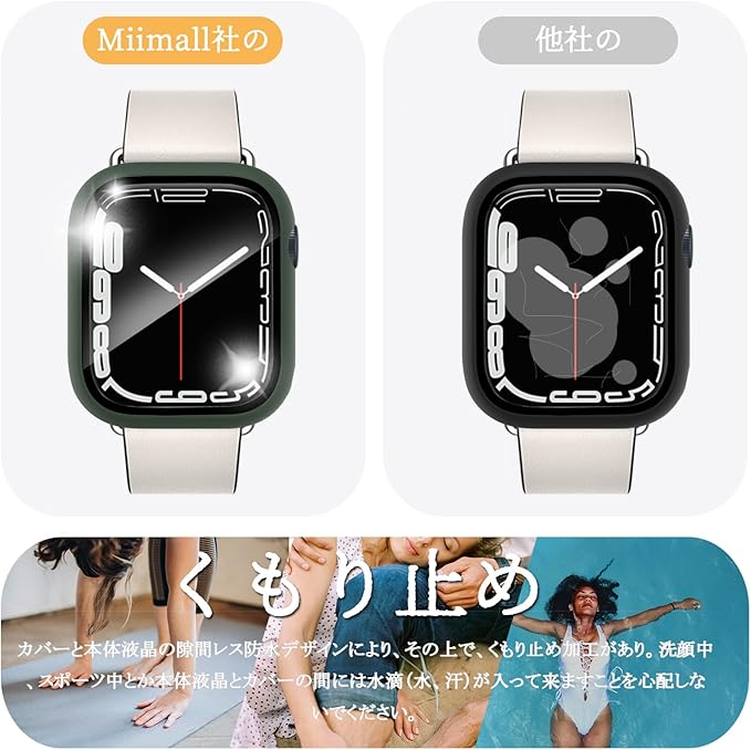 Miimall【新型3 in 1保護防水ケース】対応 Apple Watch Series 8 41mm/7 41mm ケース 本体を全面保護 アップルウォッチ8 2022 3in1 背面カバー ガラスフイルム 側面カバー 防曇 新型ケース スポーツ お風呂Apple Watch 7 防水ケース フイルム(41mm|グリーン)