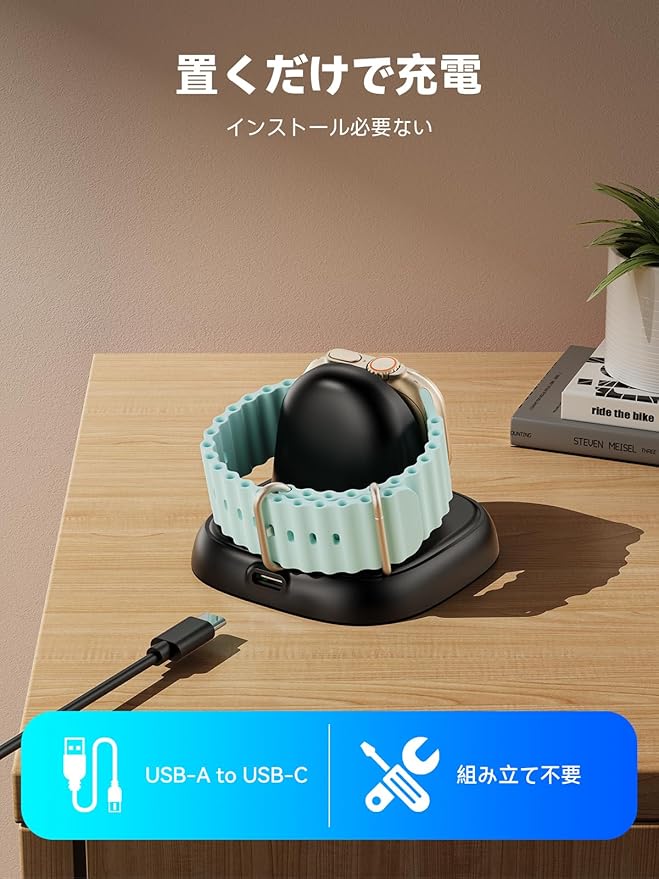 LVFAN アップルウォッチ用 充電器 磁気吸着 for apple watch用 充電スタンド ナイトスタンド for apple watch series Ultra2 Ultra SE2 SE 9 8 7 6 5 4 3対応 チャージャードック USB-C ケーブル付属 ブラック