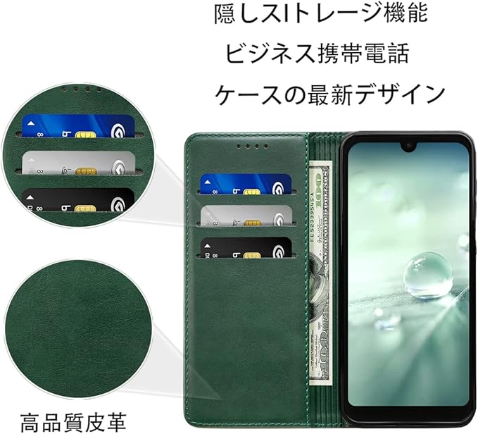 AQUOS Wish SHG06 ケース 手帳型 高質PUレザー AQUOS Wish2 ケース 耐衝撃 SH-51C ケース AQUOS Wish カバー sh-m20 ケース 内蔵マグネット開閉式 ベルトなし A104SH スマホケース おしゃれ カードポケット スタンド機能 便利 スプラット同梱 携帯ケース (グリーン)