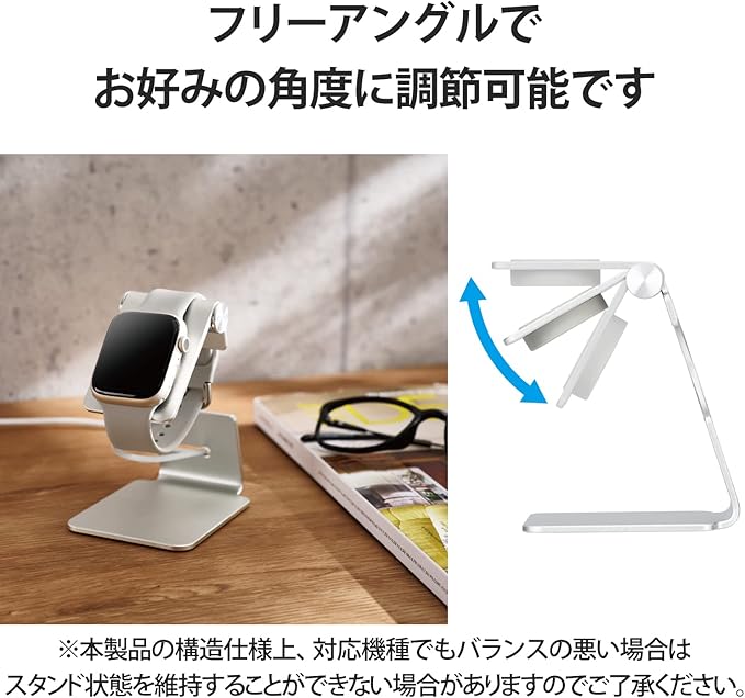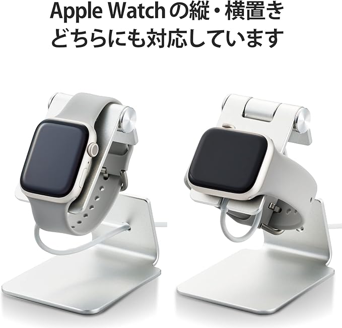 エレコム Apple Watch 充電スタンド 角度調整可 縦置き/横置き両対応 アルミ製 [Series 7 6 SE 5 4 3 2 1 / 45mm 44mm 42mm 41mm 40mm 38mm]対応 シルバー AW-DSCHALASV