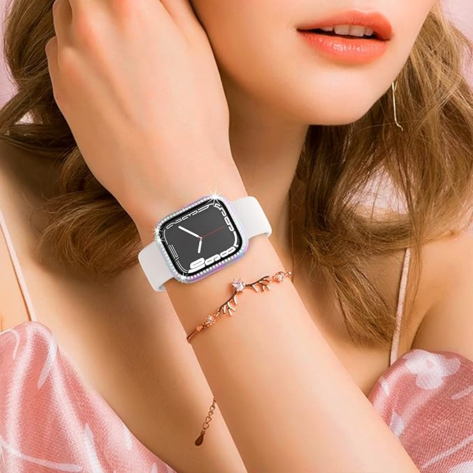 キラキラストーンが特殊接着剤でケースのフレームにちりばめられて、取りにくいです。ジュエリーのような華やかで高級感であり、周りから可愛いと評判させるデザインですAppleウォッチを新しいスタイリッシュな外観にしよう