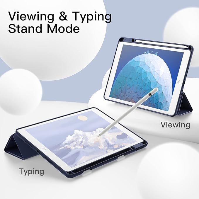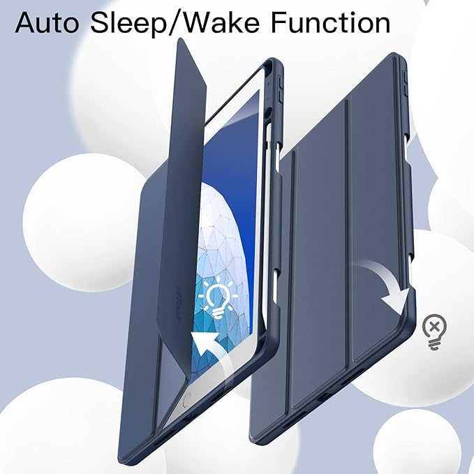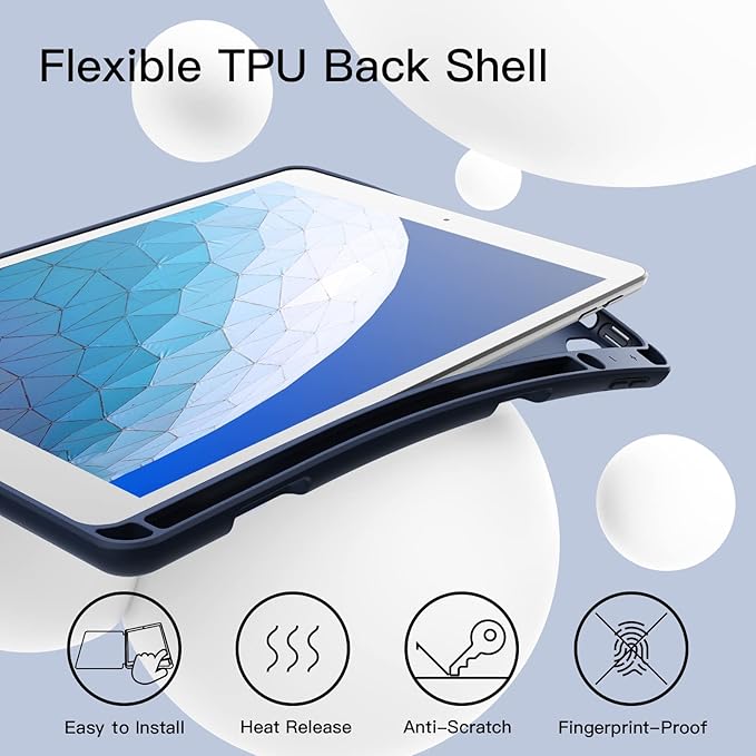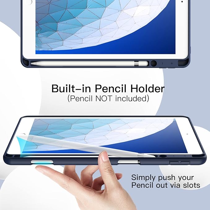 JETech iPad Air 3 (10.5インチ 2019, 第3世代)とiPad Pro 10.5 用Pencilホルダー付き ペンシル ソフトTPUバック スリム保護カバー オートウェイクアップ/スリープ機能付き (紺)