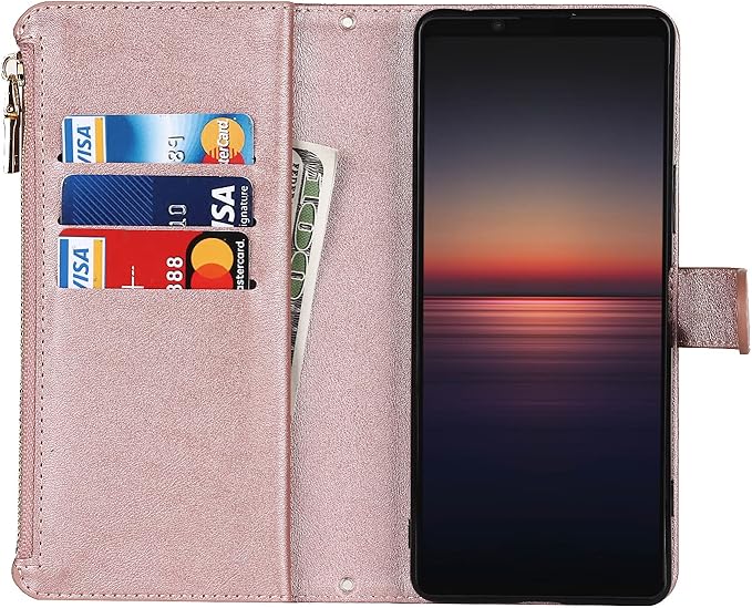 Eastwave Xperia 1 II ケース Sony Xperia 1ii SO-51A / SOG01 縄掛けケース 手帳型 財布型 ICカード コインポケット ストラップ付き カード 収納 小銭入れ ファスナーポケット付き PUレザー 6色 ピンク