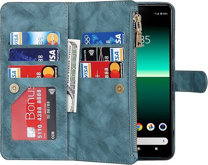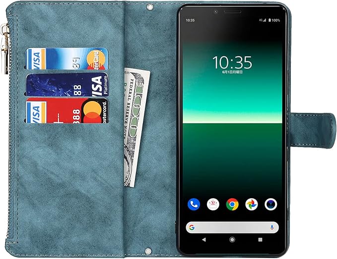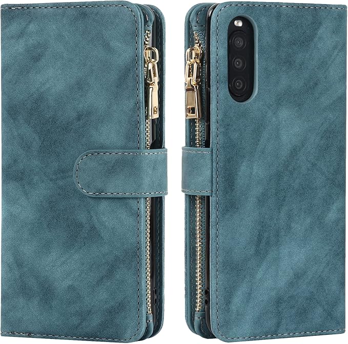 Eastwave for Xperia 10 II ケース ソニー for Sony エクスペリア 10II SO-41A 縄掛けケース 手帳型 財布型 ICカード コインポケット ストラップ付き カード 収納 小銭入れ ファスナーポケット付き PUレザー 6色 ブルー